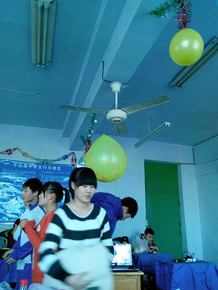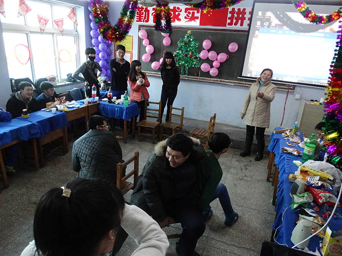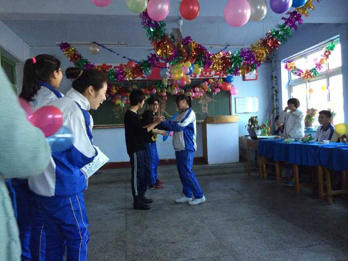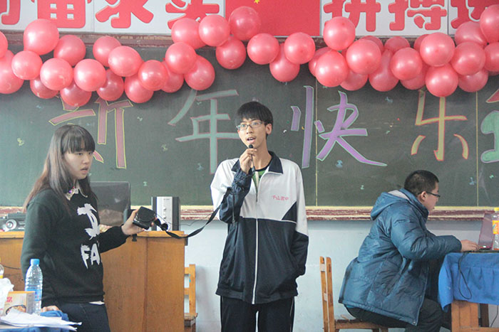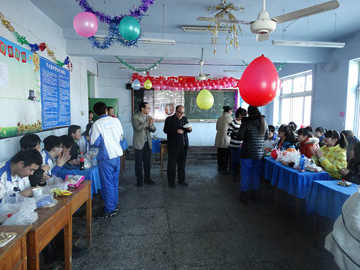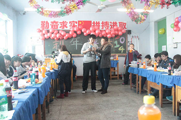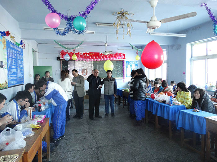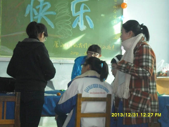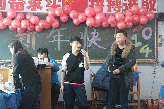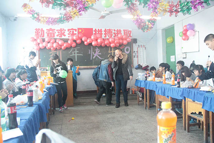 千山高中2013年元旦晚会精彩瞬间2014年1月22日 2150次2013年12月31日,千山高中在各班级举行了隆重的庆祝活动!各班同学利用有限的时间进行了充分的准备,购买用品、布置教室、准备节目,活动现场简约但是气氛热烈、同学和老师喜气洋洋!校领导还到各班进行慰问、表扬了在各方面突出的同学。全校对2014年的佳绩充满信心! ←上一页 返回前页 下一页→