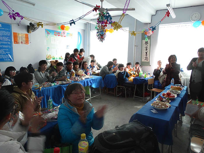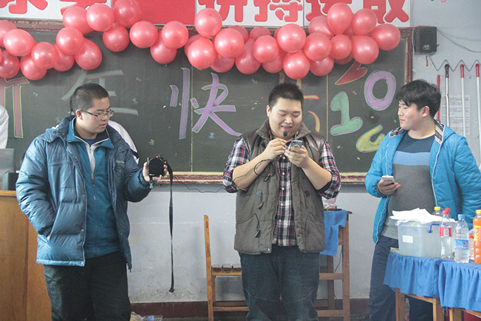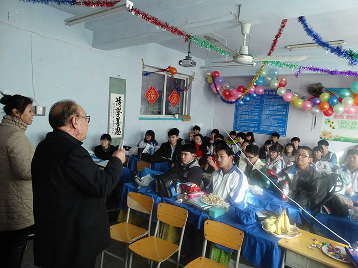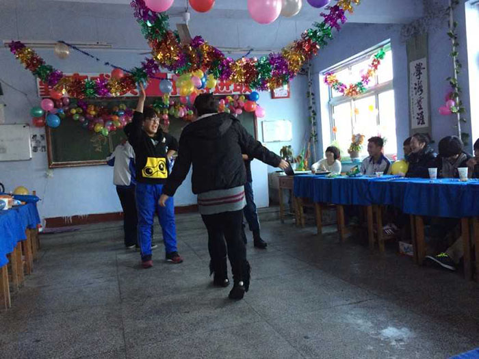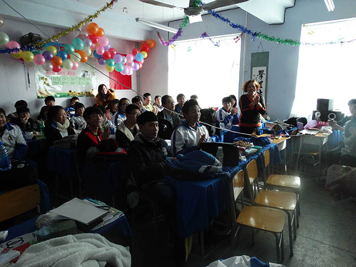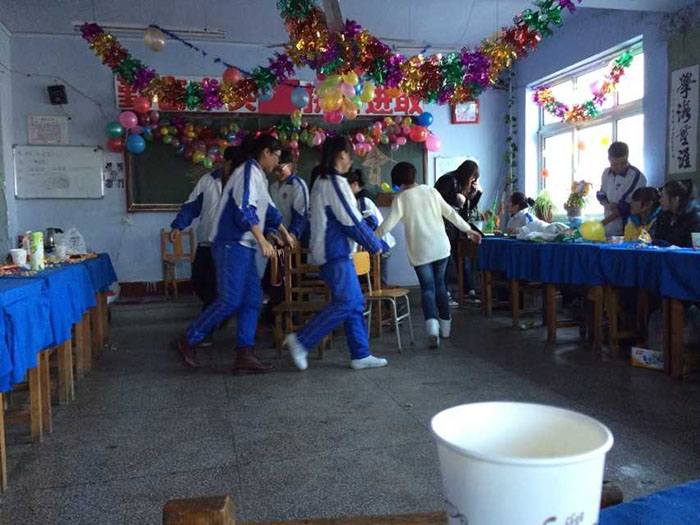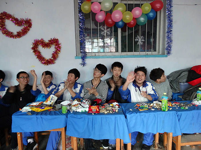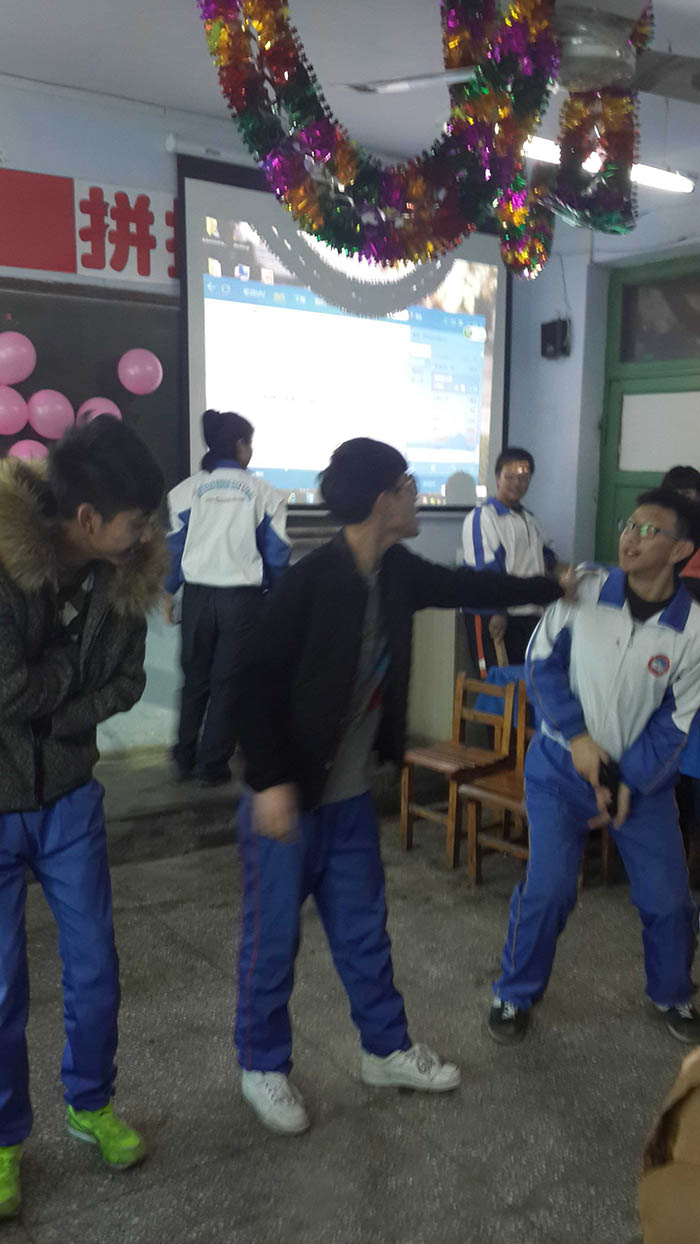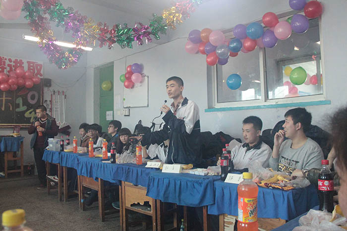 千山高中2013年元旦晚会精彩瞬间2014年1月22日 2150次2013年12月31日,千山高中在各班级举行了隆重的庆祝活动!各班同学利用有限的时间进行了充分的准备,购买用品、布置教室、准备节目,活动现场简约但是气氛热烈、同学和老师喜气洋洋!校领导还到各班进行慰问、表扬了在各方面突出的同学。全校对2014年的佳绩充满信心! ←上一页 返回前页 下一页→