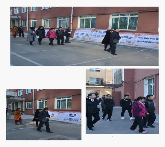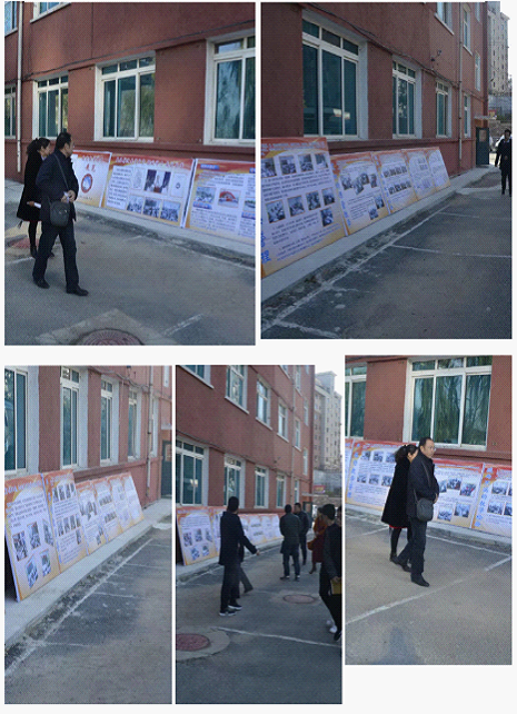 全体观摩检查组成员在我校领导和教师的陪同下,在教学楼前认真观看了我校教育教学成果展示板。通过陪同教师的细致讲解,对我校教育教学成果有了一个更加清楚的了解。