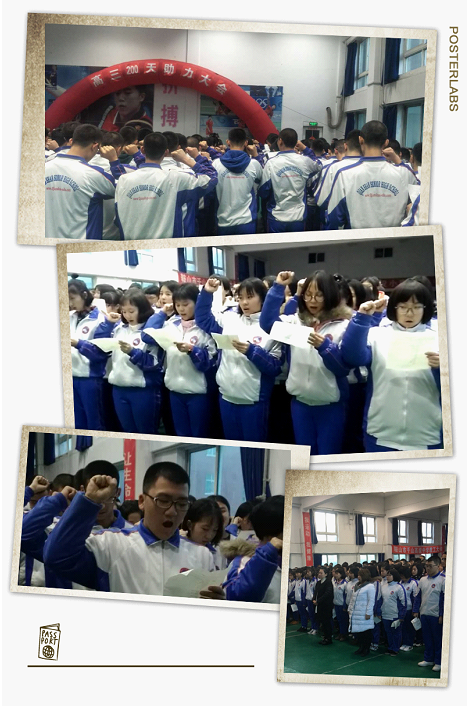 随后,在孙主任的带领下,全体高三学生用响亮的誓言表达出迎战高考的信心和勇气,激越嘹亮的呐喊感染了会场上的每一个人,经久不息的宣誓响彻会场。