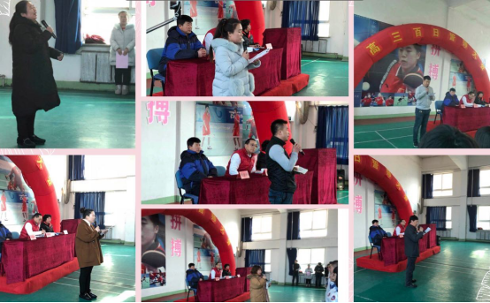 100天的含义是冲剌,100天的态势是进取,100天的价值是蜕变。全体高三师生将以此次大会为契机,齐心协力,振奋精神,在三个100%(100%教会、100%学会、100%考会)和四层思维训练的教学方法的正确领导和学校的全力支持下,创造千山高中2018年高考的新辉煌。