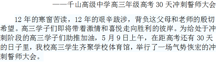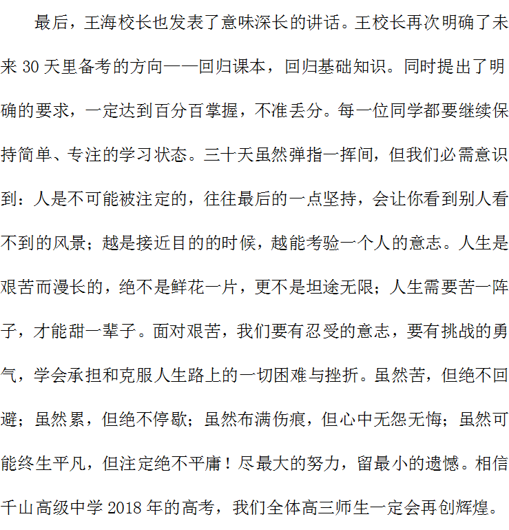 鞍山市千山高级中学 激爆潜能 追求卓越 低进高出 优进精出