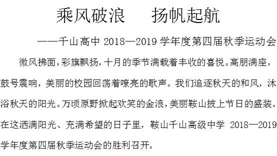 鞍山市千山高级中学 激爆潜能 追求卓越 低进高出 优进精出