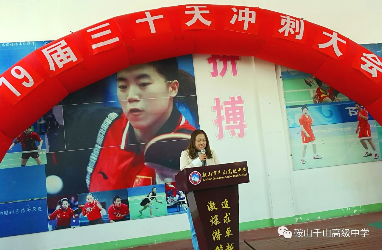 万米长跑功在百米冲刺,十年磨剑全凭一日开锋。今天,时距高考整整30天。三十天,卧薪尝胆;三十天,背水一战;三十天,豪情万丈;三十天,稳打稳干。今日,正是宝剑出鞘、利箭张弓之时。2019年5月7日上午10时,鞍山市千山高中在校体育馆隆重召开2019年高考倒计时30天冲刺大会,擂响出征的战鼓,吹响进军的号角。
