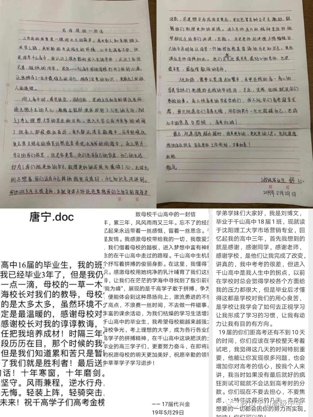 六月艳阳天,高考在眼前。还有3天就要高考,鞍山市千山高中部分往届毕业生,纷纷给即将征战高考的学弟学妹们送来了祝福和寄语……