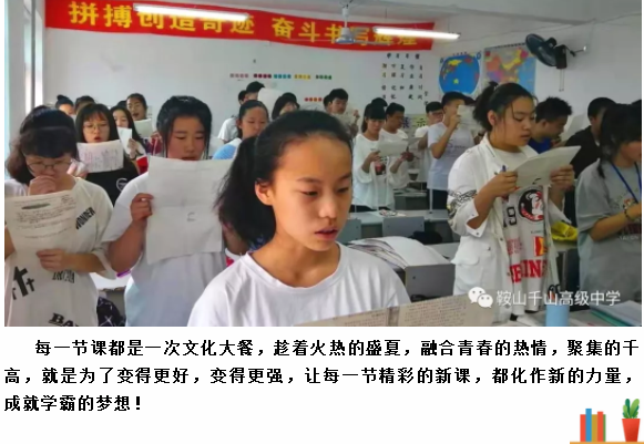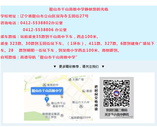 鞍山市千山高级中学 激爆潜能 追求卓越 低进高出 优进精出