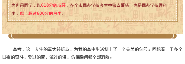 辉煌千高 | 我校高世昌同学以618分被东北大学录取!(一)