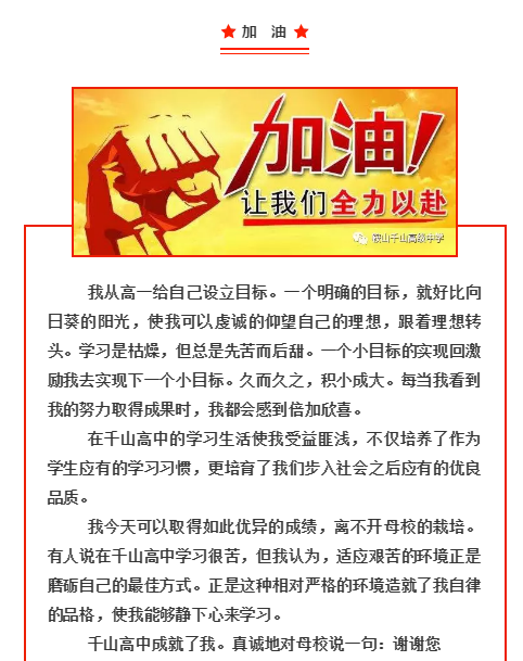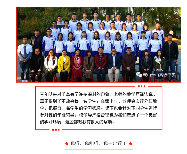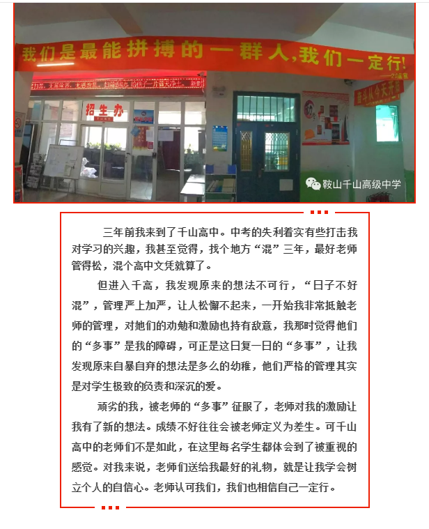 鞍山市千山高级中学 激爆潜能 追求卓越 低进高出 优进精出