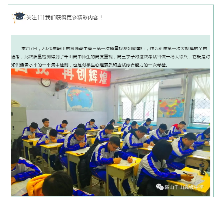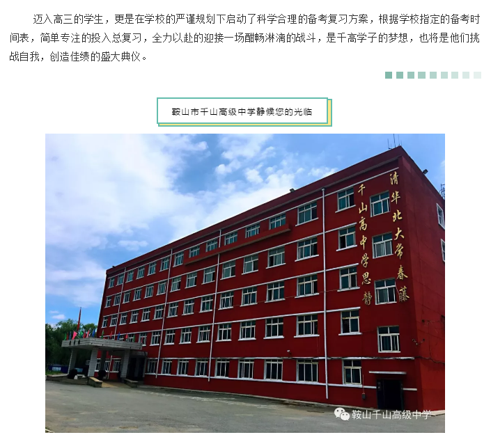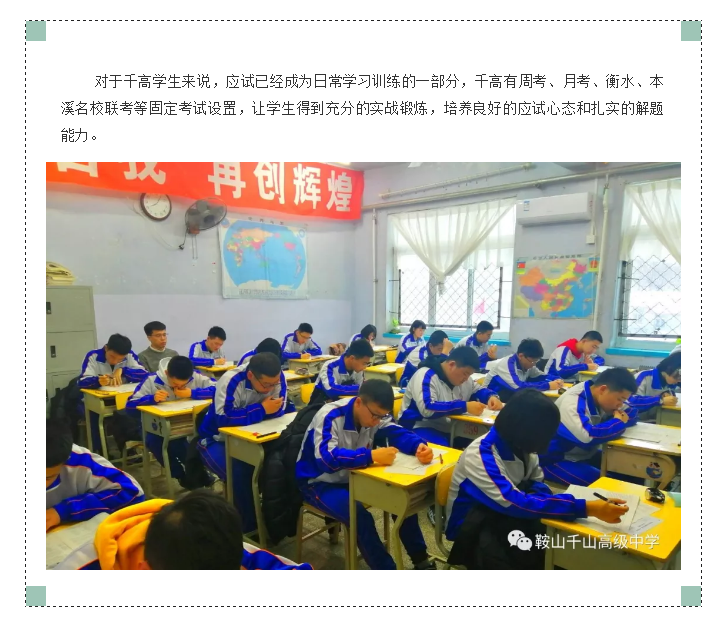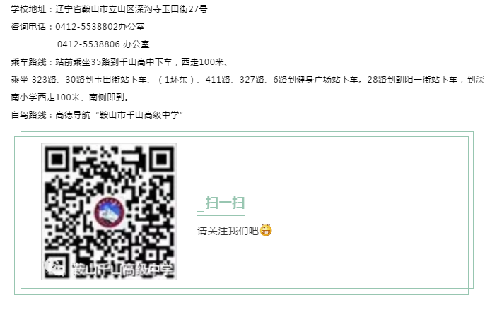 鞍山市千山高级中学 激爆潜能 追求卓越 低进高出 优进精出