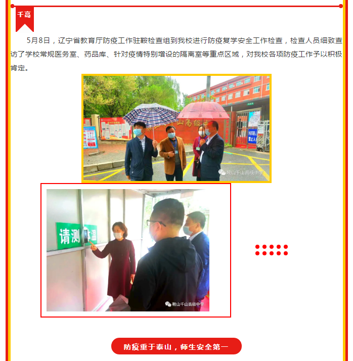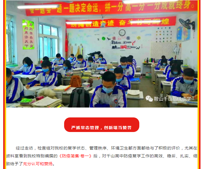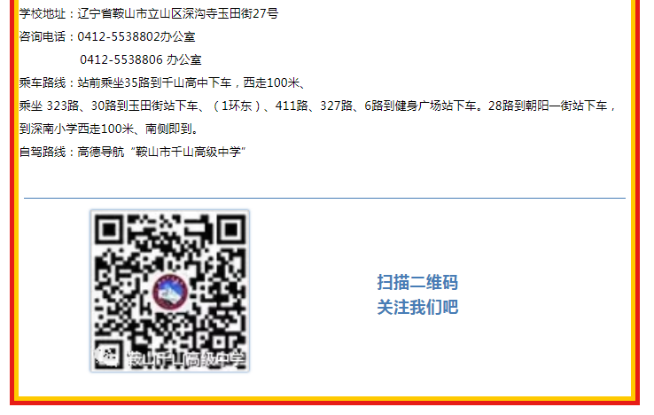 鞍山市千山高级中学 激爆潜能 追求卓越 低进高出 优进精出