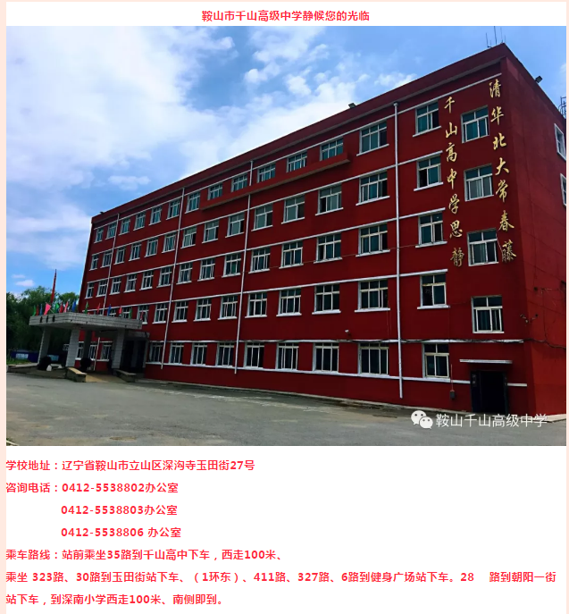 鞍山市千山高级中学 激爆潜能 追求卓越 低进高出 优进精出