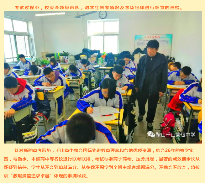 鞍山市千山高级中学 激爆潜能 追求卓越 低进高出 优进精出