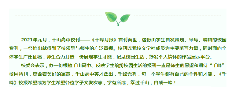 鞍山市千山高级中学---《千峰·月报》校刊力邀学子“登峰造极”