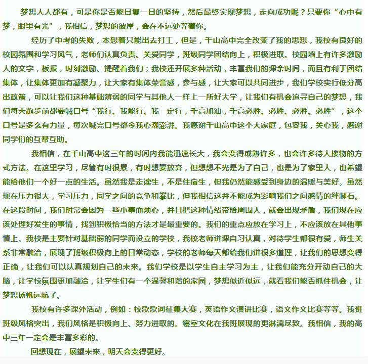 鞍山市千山高级中学 激爆潜能 追求卓越 低进高出 优进精出