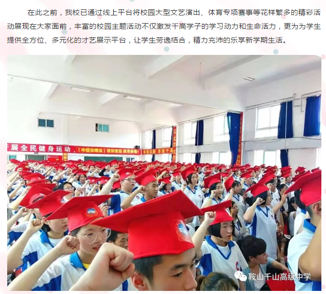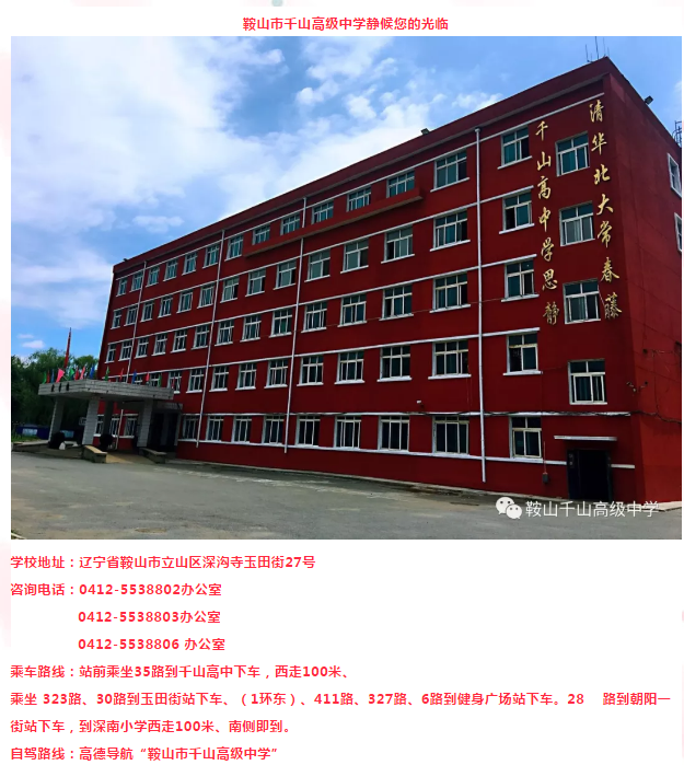 鞍山市千山高级中学 激爆潜能 追求卓越 低进高出 优进精出