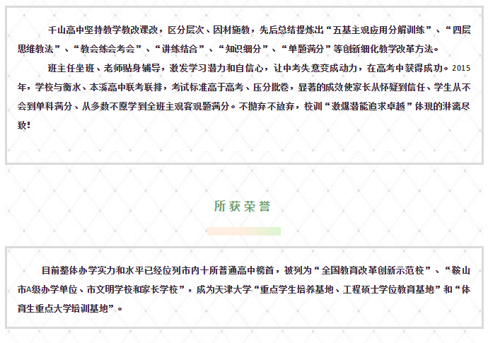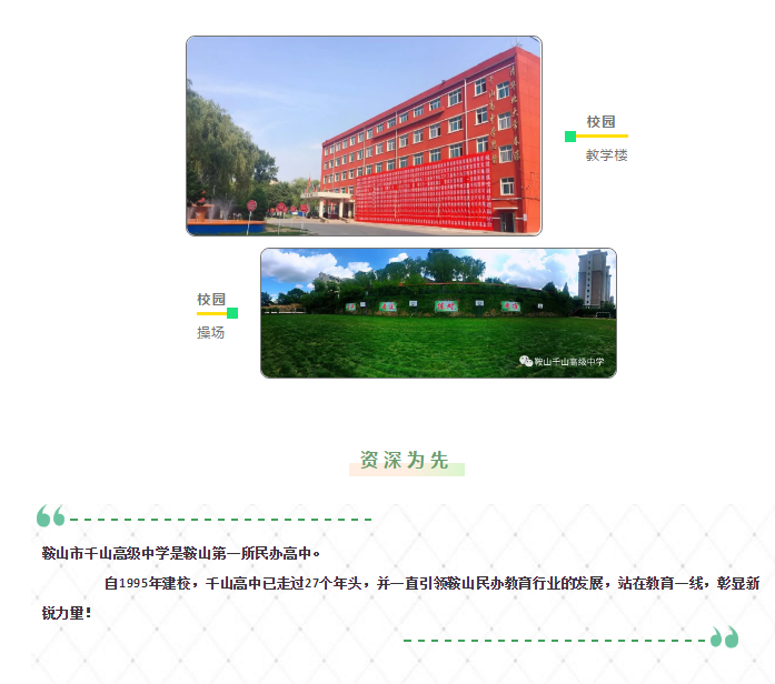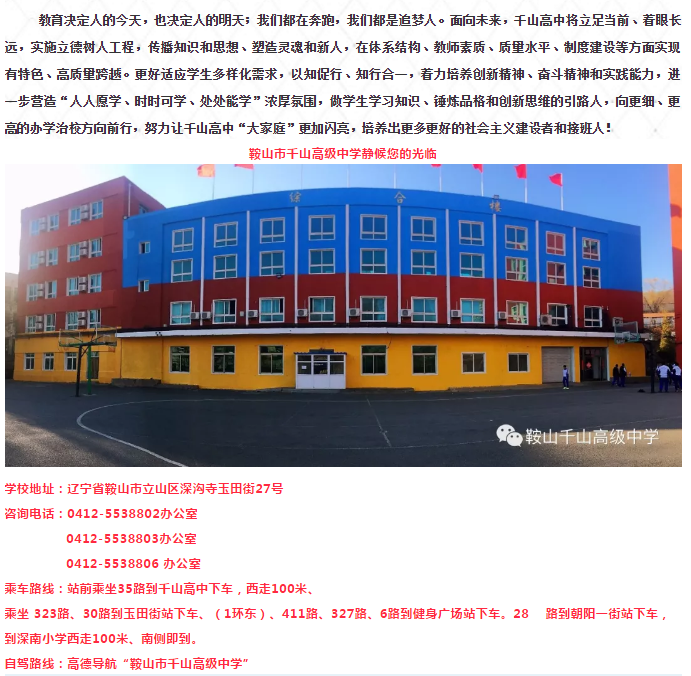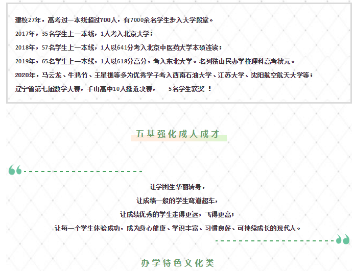 鞍山市千山高级中学 激爆潜能 追求卓越 低进高出 优进精出
