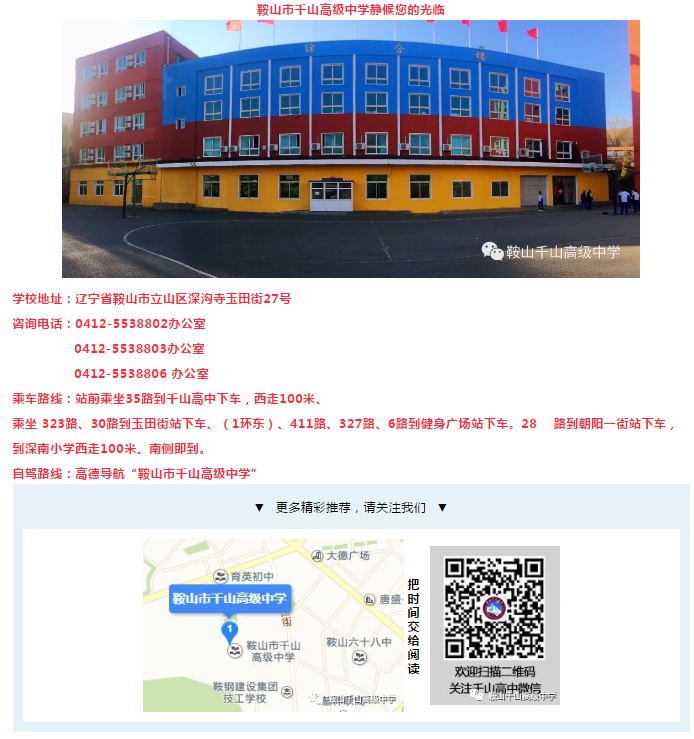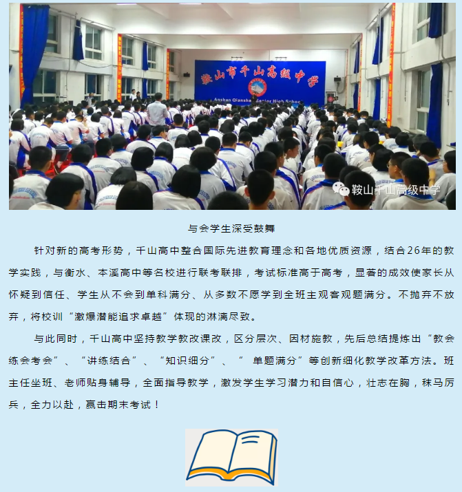 鞍山市千山高级中学 激爆潜能 追求卓越 低进高出 优进精出