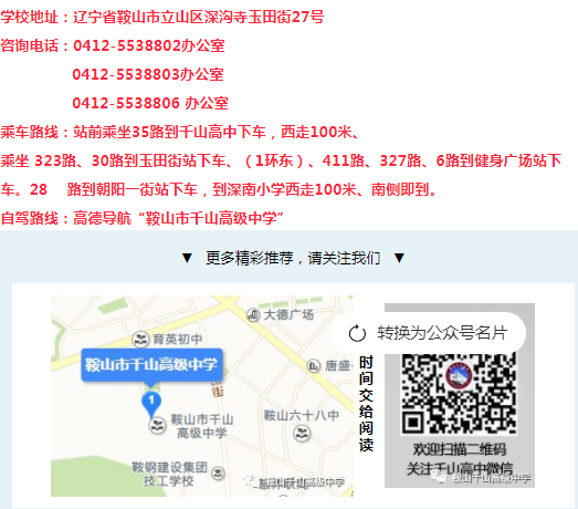 鞍山市千山高级中学 激爆潜能 追求卓越 低进高出 优进精出