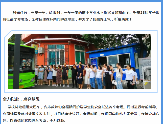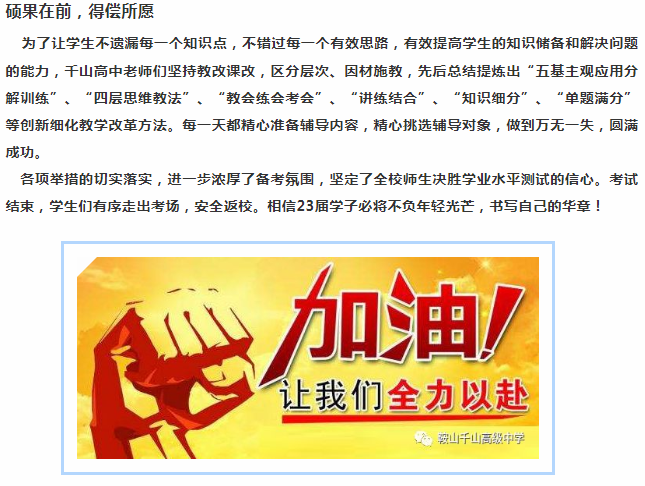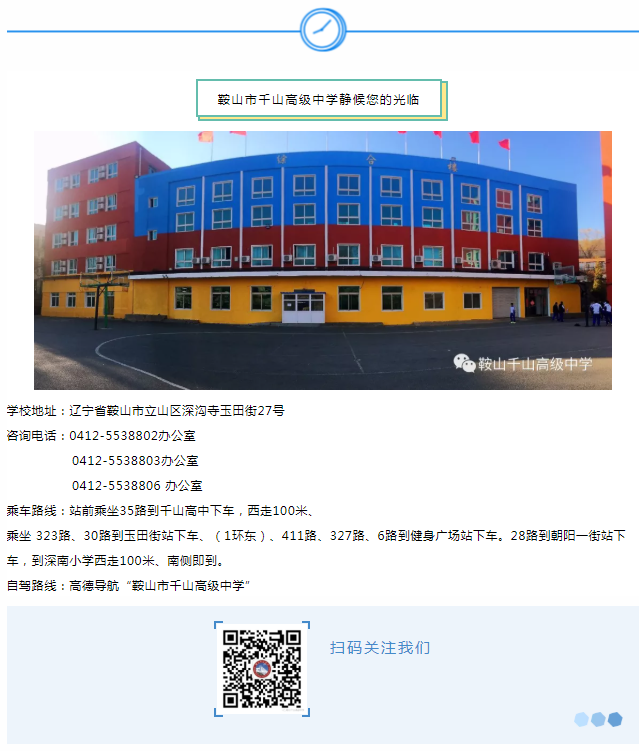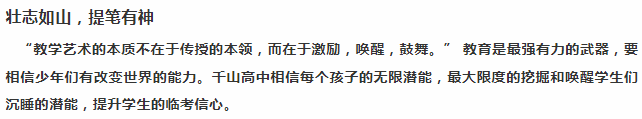 鞍山市千山高级中学 激爆潜能 追求卓越 低进高出 优进精出
