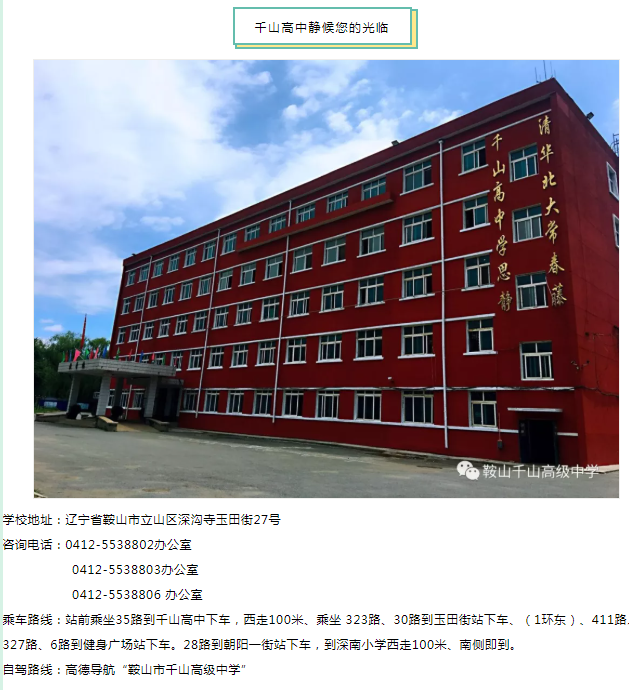 鞍山市千山高级中学 激爆潜能 追求卓越 低进高出 优进精出