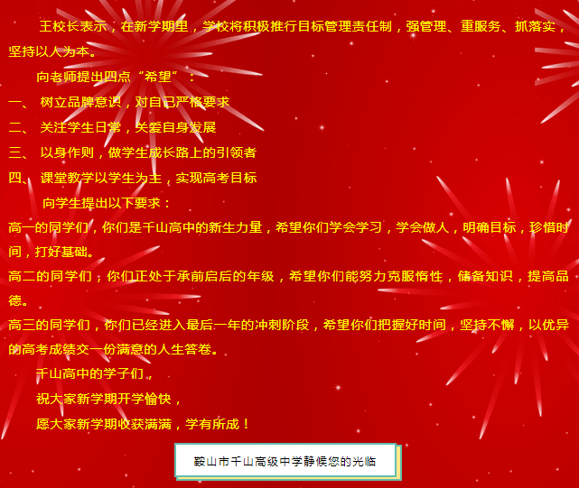 鞍山市千山高级中学 激爆潜能 追求卓越 低进高出 优进精出