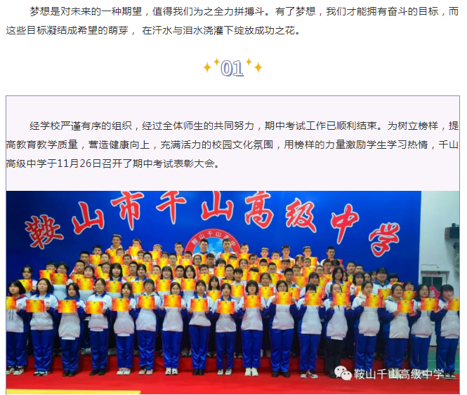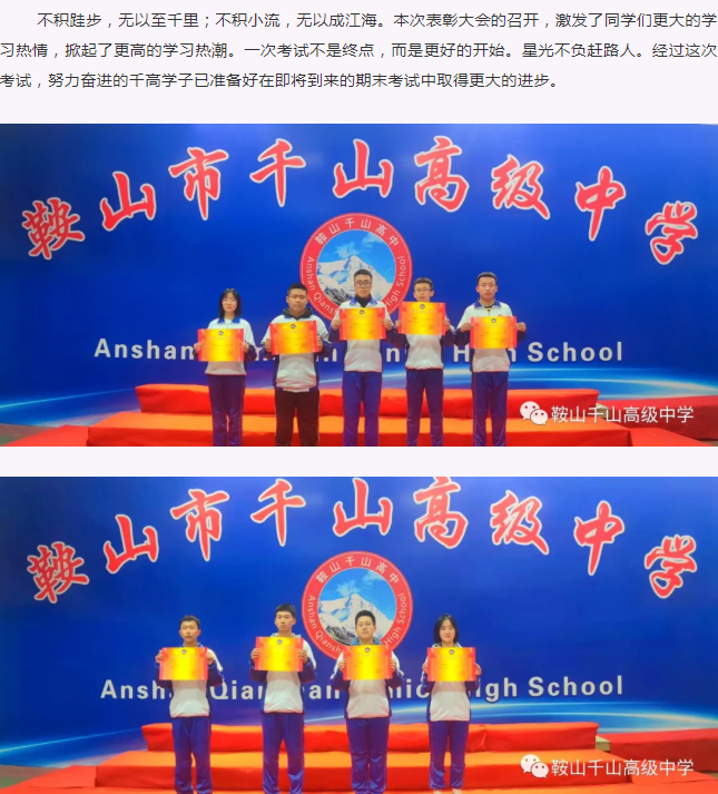 表彰助力千高学子 冲刺期末再创佳绩——千山高中期中表彰大会