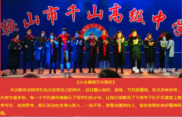 文艺汇演展风采,舞动青春梦飞扬——鞍山市千山高级中学辞旧迎新联欢会