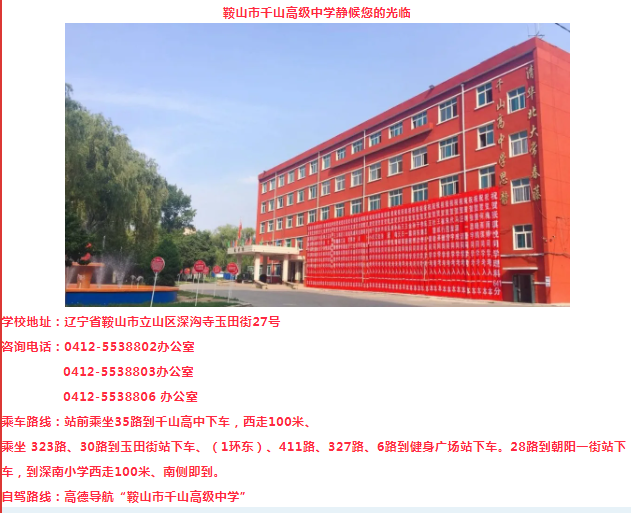 鞍山市千山高级中学 激爆潜能 追求卓越 低进高出 优进精出