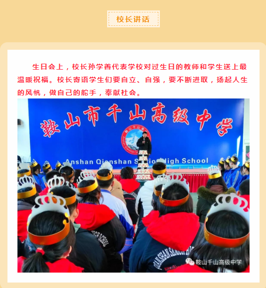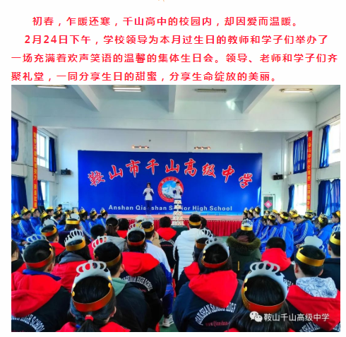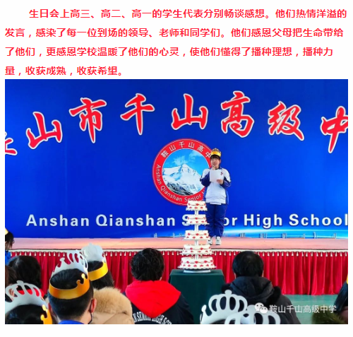 鞍山市千山高级中学 激爆潜能 追求卓越 低进高出 优进精出