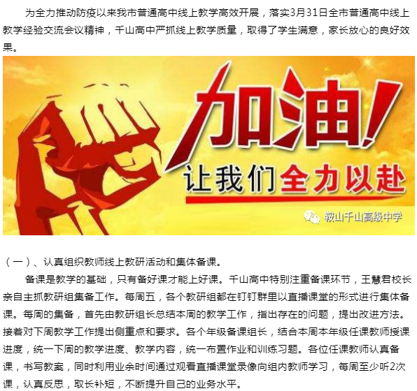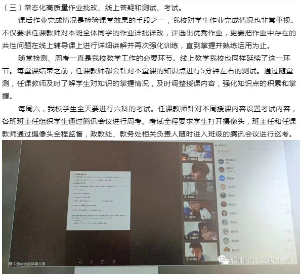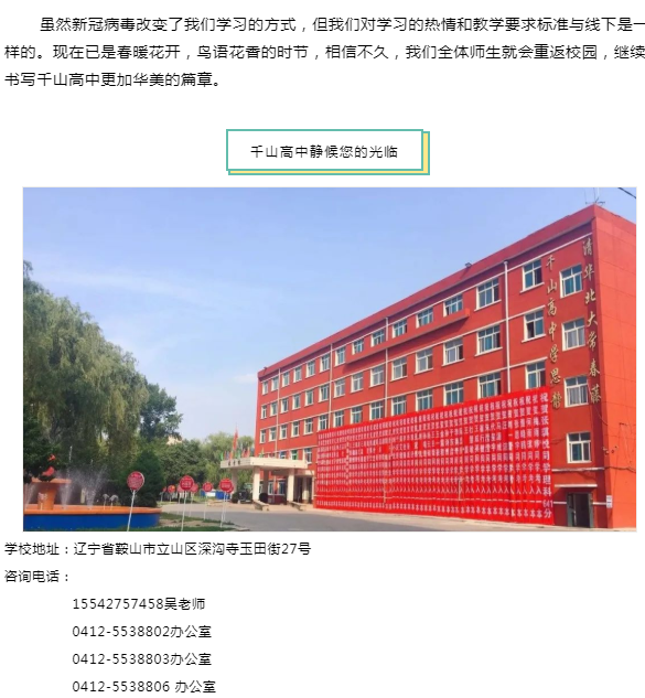 严抓线上教学质量 学生满意家长放心——千山高中线上教学纪实