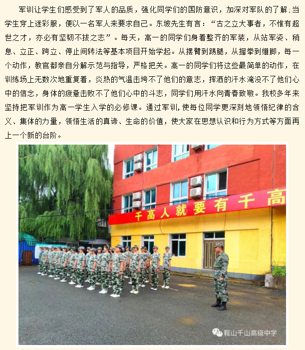 磨意志坚定信心 洒汗水致敬青春——鞍山市千山高中高一军训