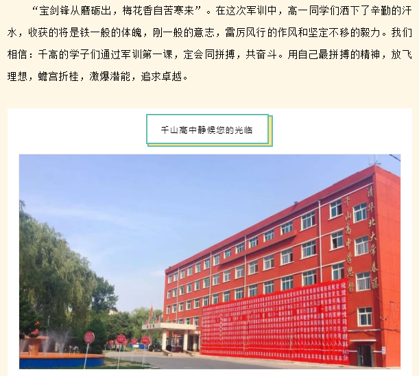 鞍山市千山高级中学 激爆潜能 追求卓越 低进高出 优进精出