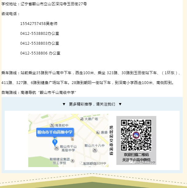 学校地址:辽宁省鞍山市立山区深沟寺玉田街27号