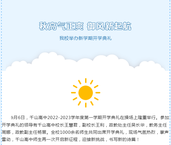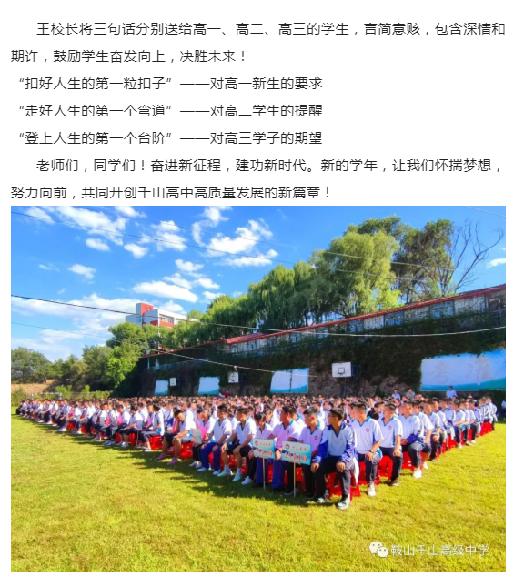 秋高气正爽,御风新起航 ——千山高中开学典礼隆重举行