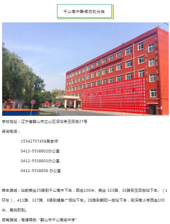 鞍山市千山高级中学 激爆潜能 追求卓越 低进高出 优进精出