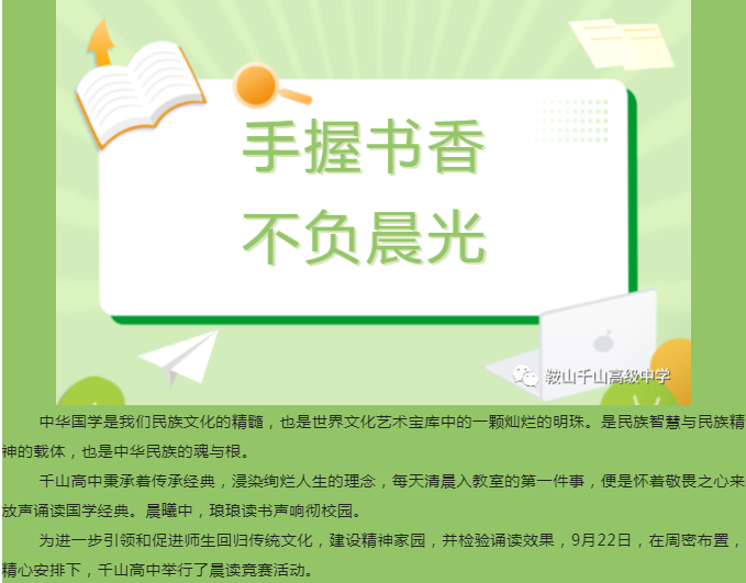 鞍山市千山高级中学---传承经典,浸染绚烂人生