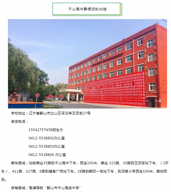鞍山市千山高级中学 激爆潜能 追求卓越 低进高出 优进精出