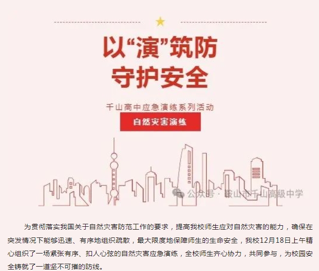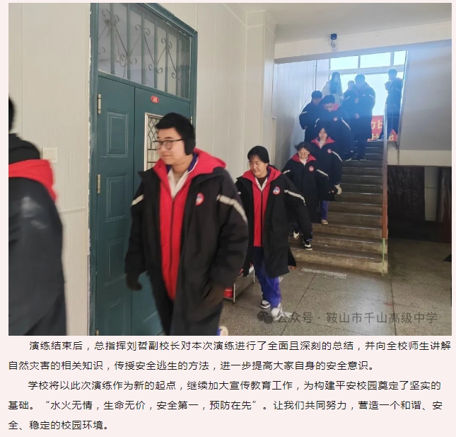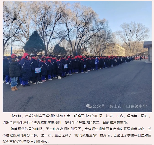 应急演练始于心 防患未然始于行——千山高中开展防范自然灾害应急疏散演练活动