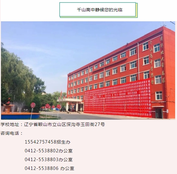 鞍山市千山高级中学 激爆潜能 追求卓越 低进高出 优进精出