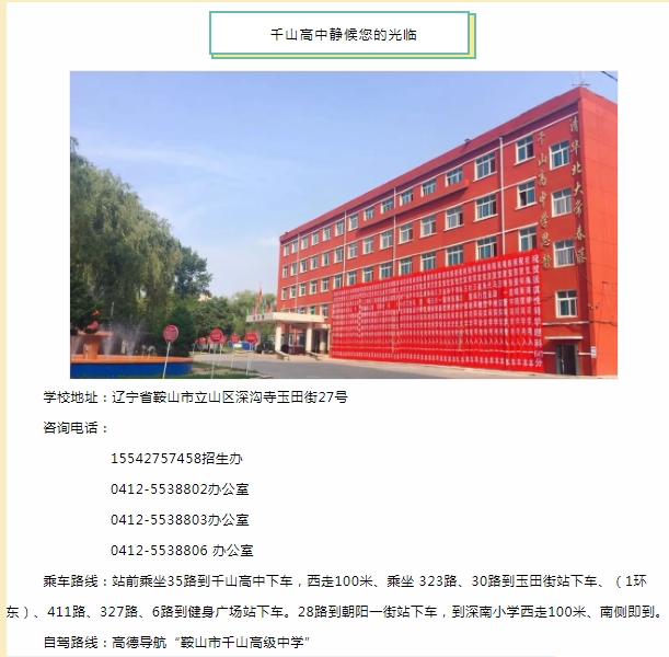 鞍山市千山高级中学 激爆潜能 追求卓越 低进高出 优进精出