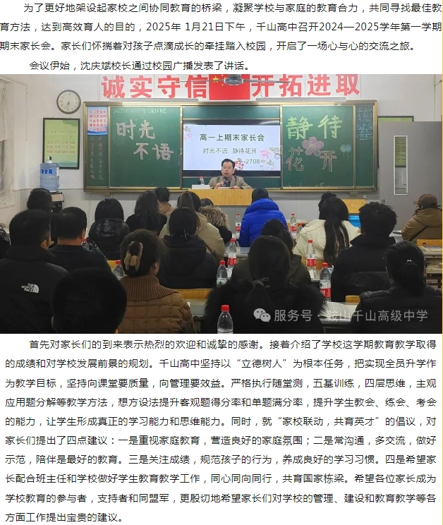 家校同心双奔赴 凝心聚力育未来——千山高中家长会