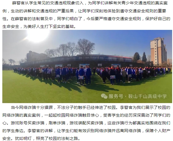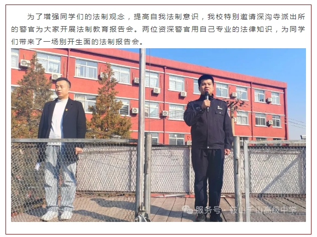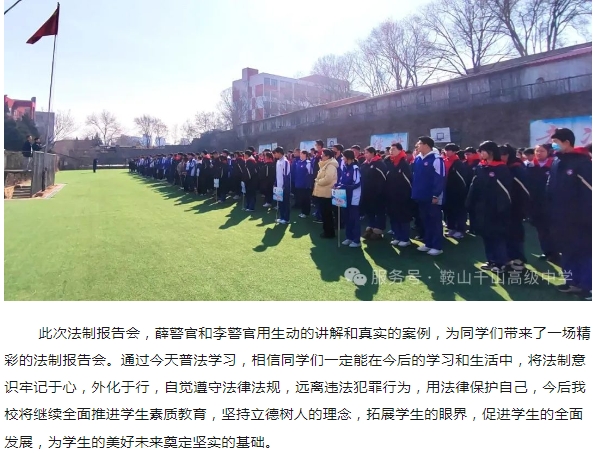 法制护航校园 共筑美好未来---鞍山市千山高中法制报告会