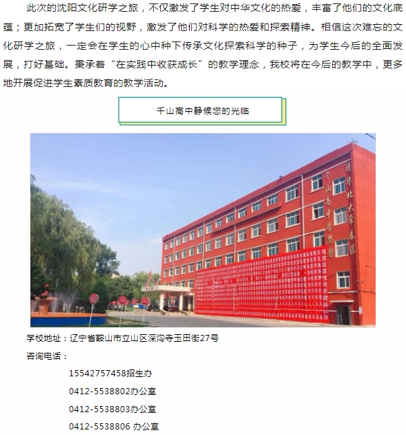 研学旅途促成长 多彩课堂在路上——千山高中沈阳研学