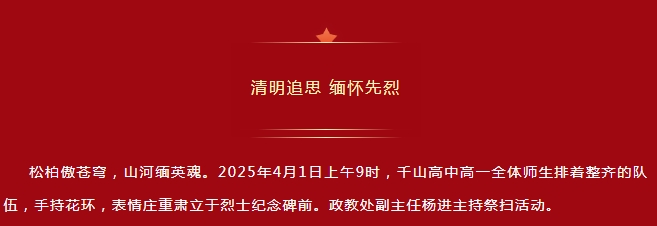 清明追思英烈志 薪火相传勇担当——千山高中开展清明祭扫活动