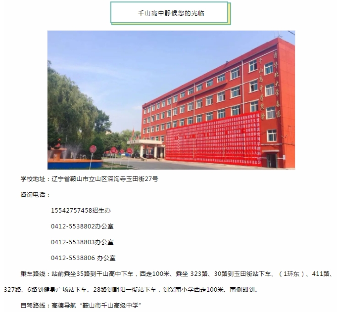 鞍山市千山高级中学 激爆潜能 追求卓越 低进高出 优进精出