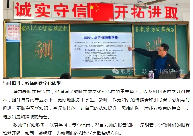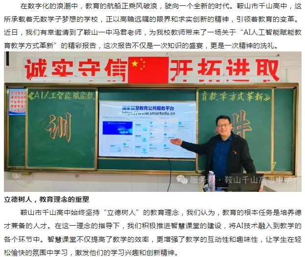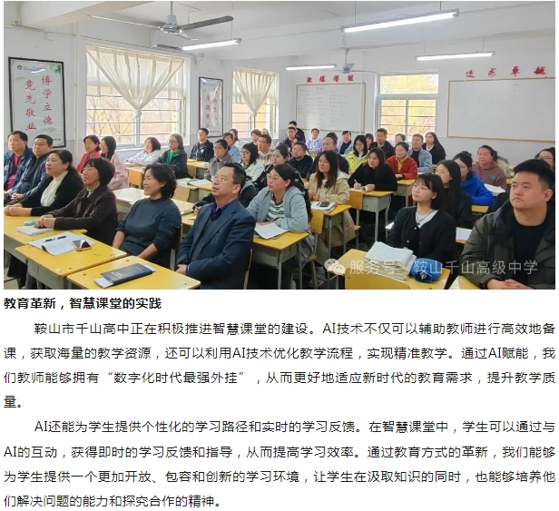 鞍山市千山高级中学---数字时代开启杏坛新风 人工智能助力课堂革新