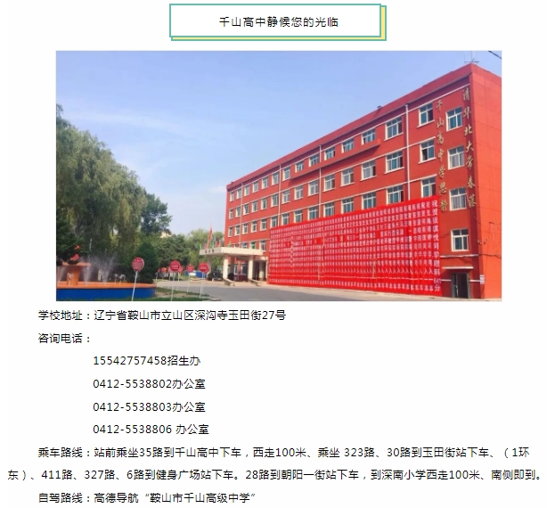 鞍山市千山高级中学 激爆潜能 追求卓越 低进高出 优进精出