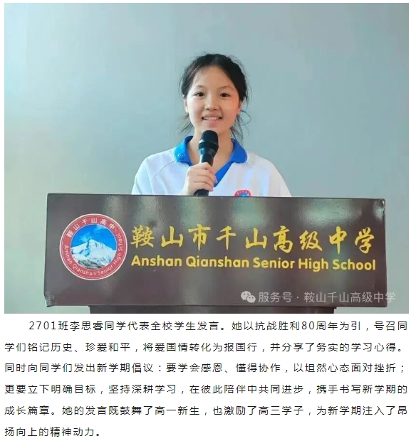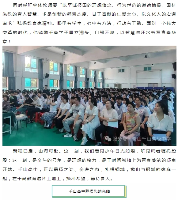 金秋为序启新程 奋楫扬帆正当时——千山高中2025年秋季学期开学典礼