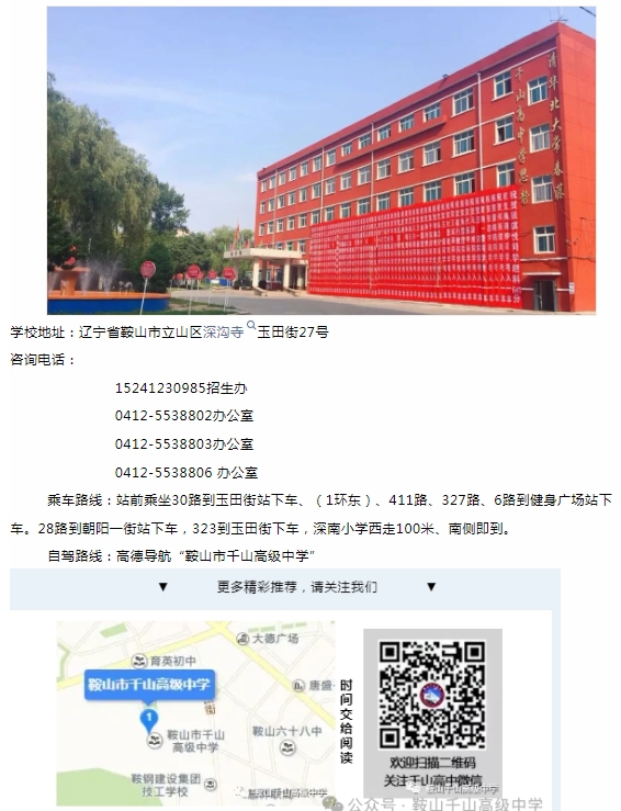 • 学校地址:辽宁省鞍山市立山区深沟寺玉田街27号