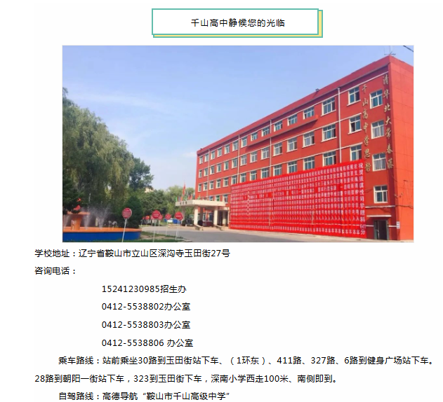鞍山市千山高级中学 激爆潜能 追求卓越 低进高出 优进精出
